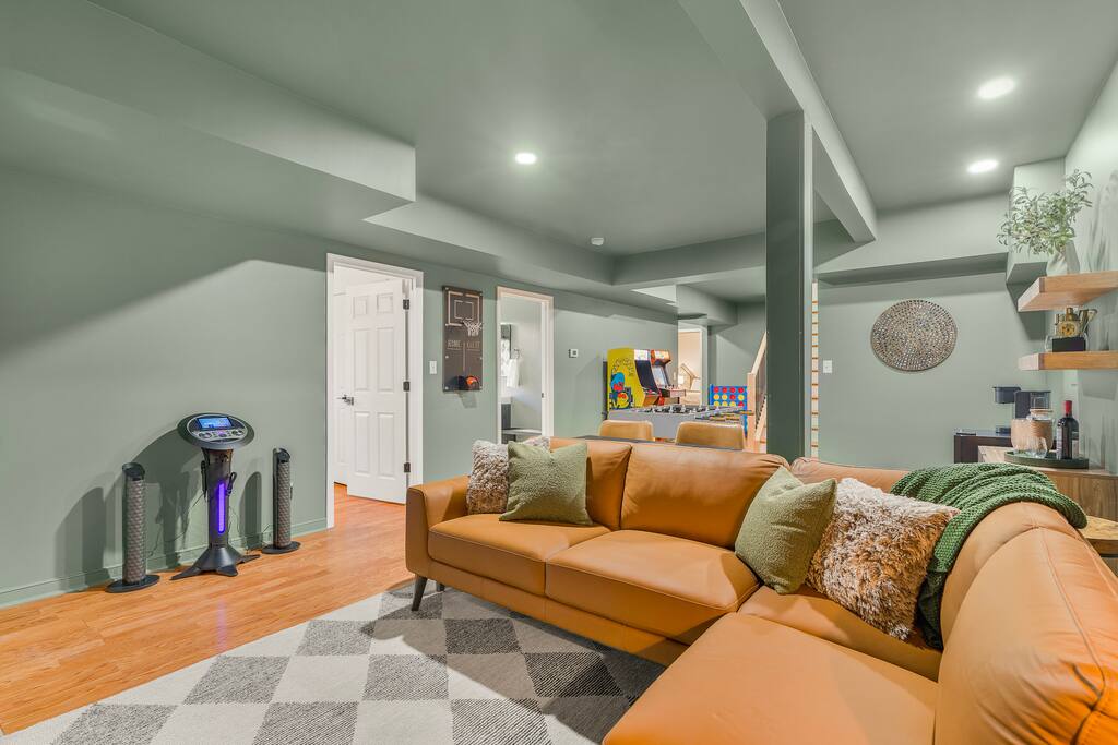 The home layout is as follows: Main level: - Private back deck with brand new dining table for 16 and lounge area with propane firepit and gas grill (propane provided for both) - Living room with large TV and electric fireplace, open to dining area and kitchen - Dining table seats 11, plus 5 more at the bar - Kitchen has stainless appliances and is fully stocked with everything needed to prepare meals. Ground coffee and k-cups provided. - BR1: Master bedroom with king bed and ensuite bathroom with shower/tub combo - BR2: King bedroom - BR3: Two sets of twin-over-twin bunk beds - Hallway full bath with shower/tub combo - Garage (also holds add'l full size refrigerator, full size washer and dryer, and a set of cornhole boards) Lower level: - Lower deck features brand new hot tub, barrel sauna, and couch with additional propane fire table - Additional living room with leather couch, 65" TV, foosball, 2 arcade machines, karaoke machine, large connect 4, and wet bar with mini fridge - BR4: King bedroom with ensuite bathroom with soaker tub and separate shower - BR5: King bedroom - BR6: Queen-over-queen bunk bed - Hallway full bath with shower Things to do nearby: The house is about a 7 minute drive to the slopes, pool, and dining at Massanutten, 4 minutes to the spa, and just 5 minutes to the indoor/outdoor Waterpark. The Swift Run Gap entrance to Shenandoah National Park is 15 minutes away with some of the best hiking on the east coast. JMU and everything else in Harrisonburg is 20 minutes away, and there are several breweries, wineries, and restaurants within 20 minutes of the house.