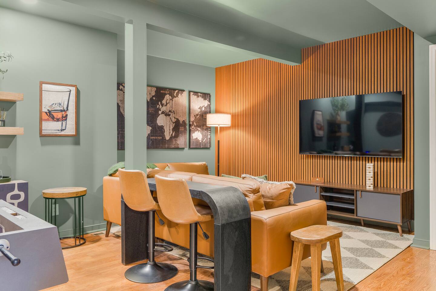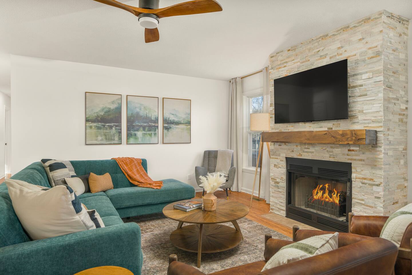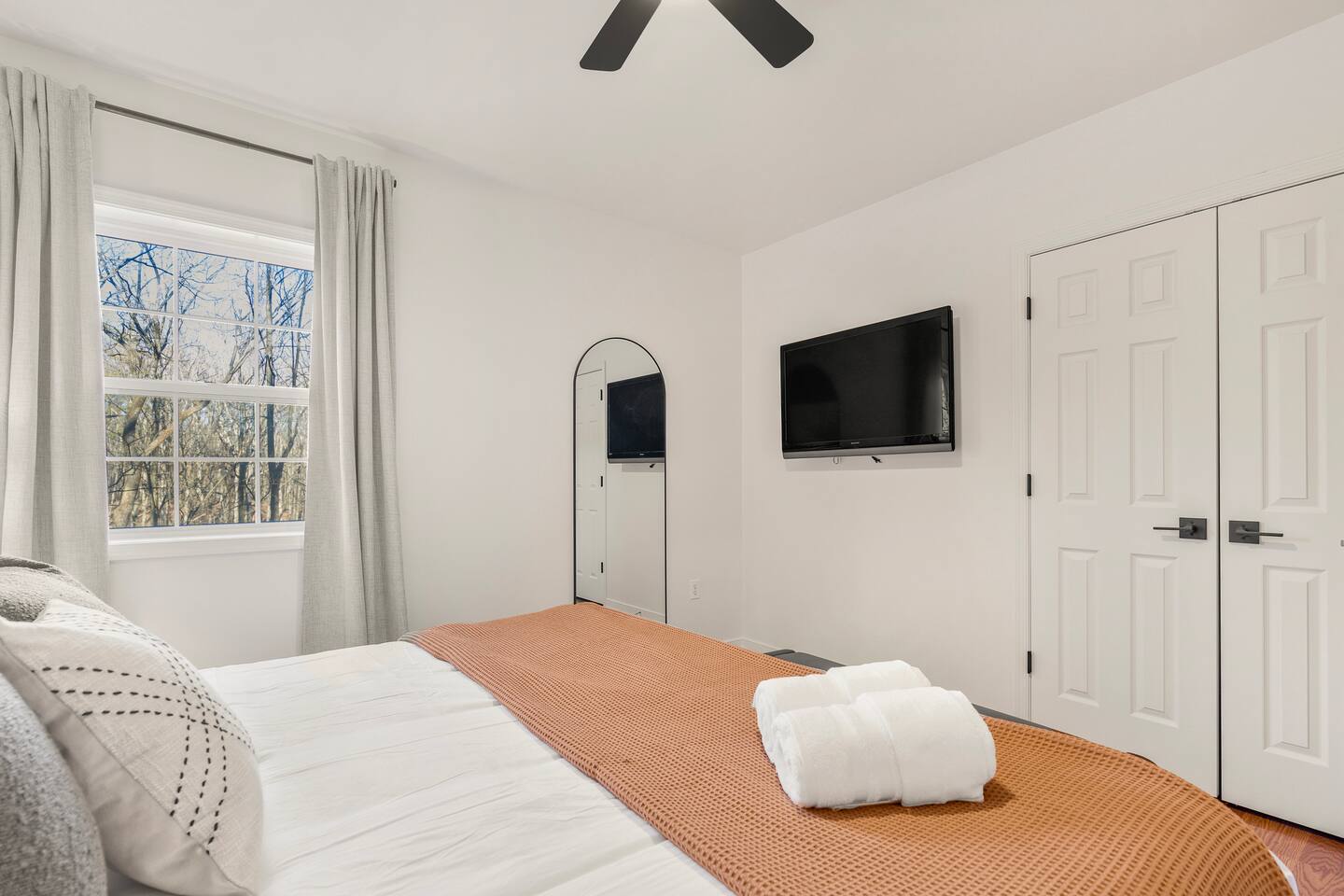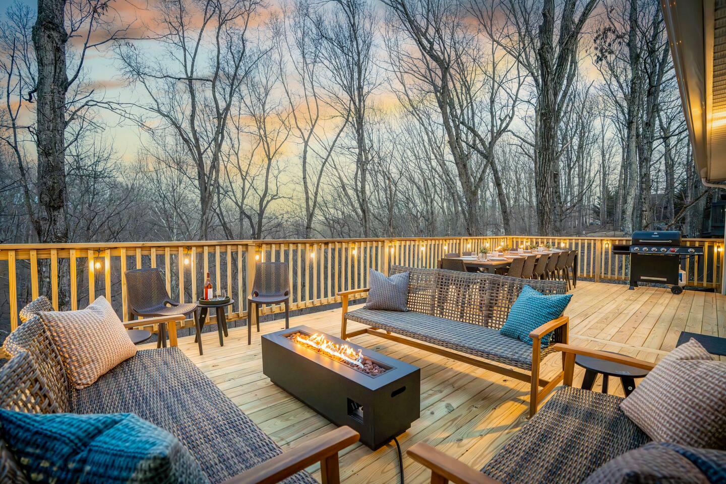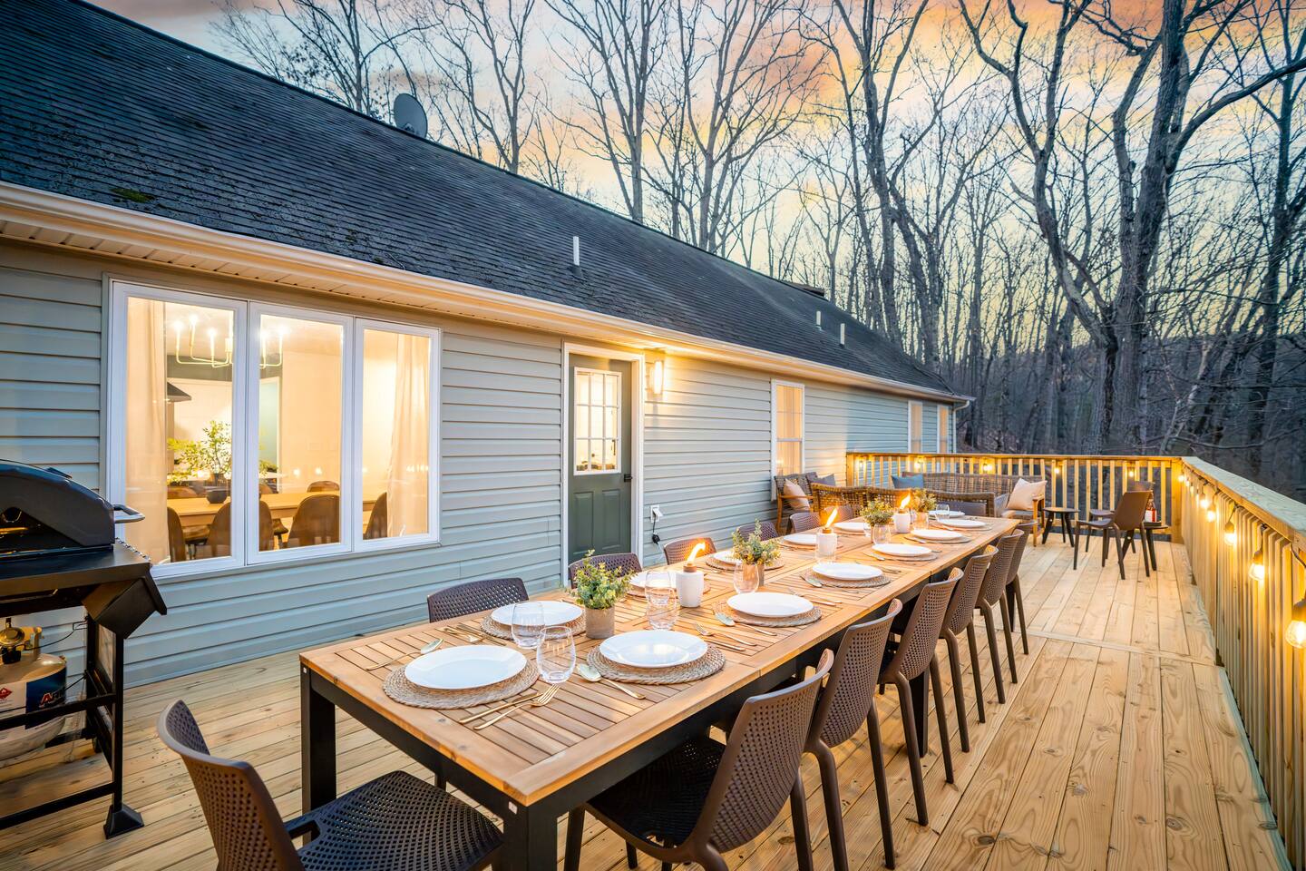 Welcome to Timber Ridge, a fully remodeled and designer-decorated home in Massanutten. With 6 bedrooms, the house sleeps 16 comfortably! Relax in the hot tub or sauna, then dine at the 16-person outdoor table or sip wine at the firepit. Inside you'll love the open floor plan and updated kitchen. Downstairs is a second living room/game room with foosball, karaoke, and arcade games. EV charger is in the driveway. Plus, pet friendly! Managed by New School Hosting- see my profile for more reviews.