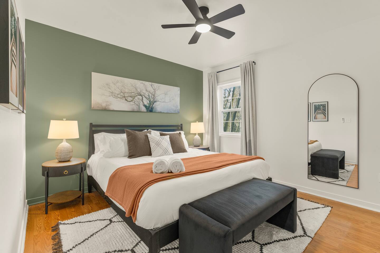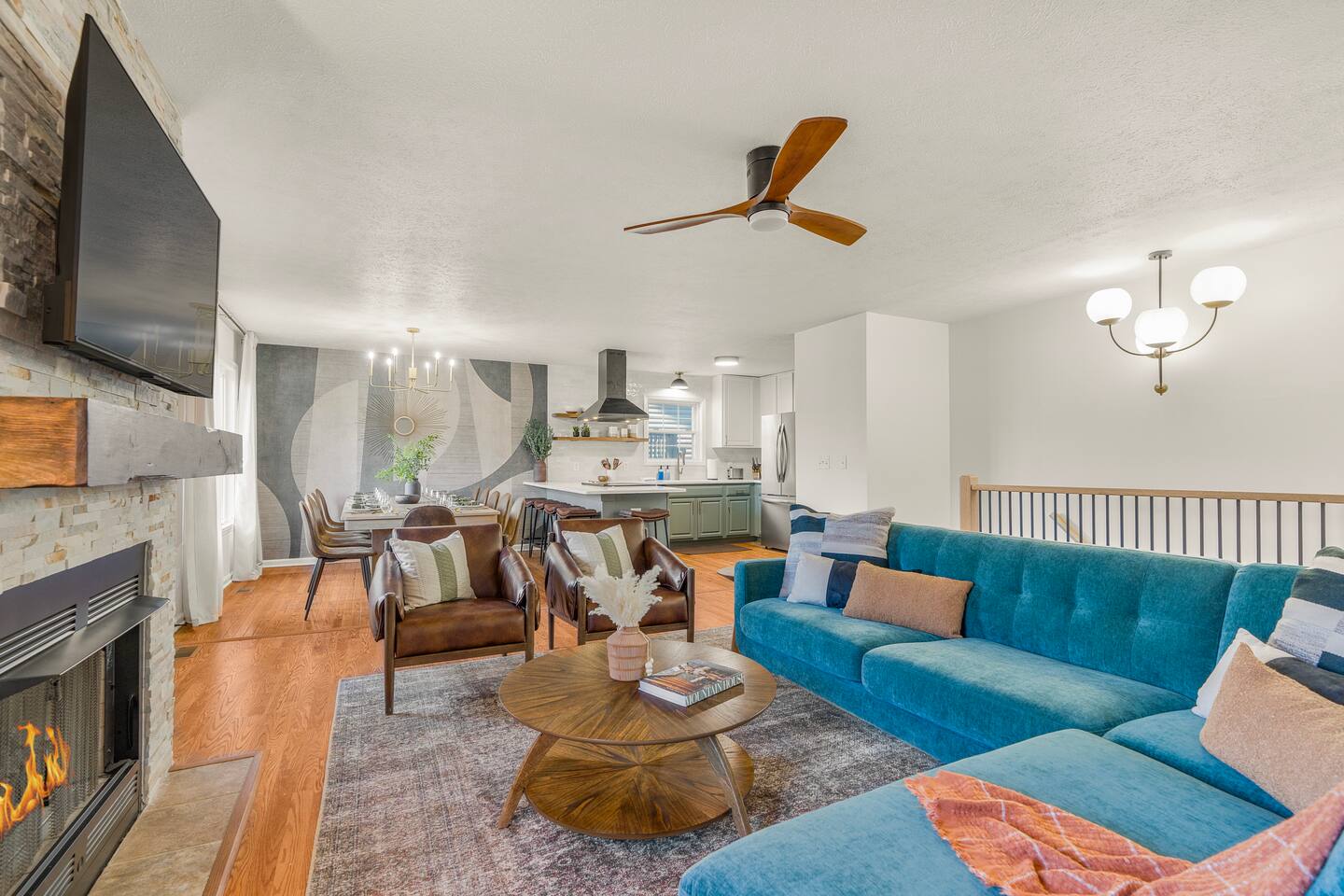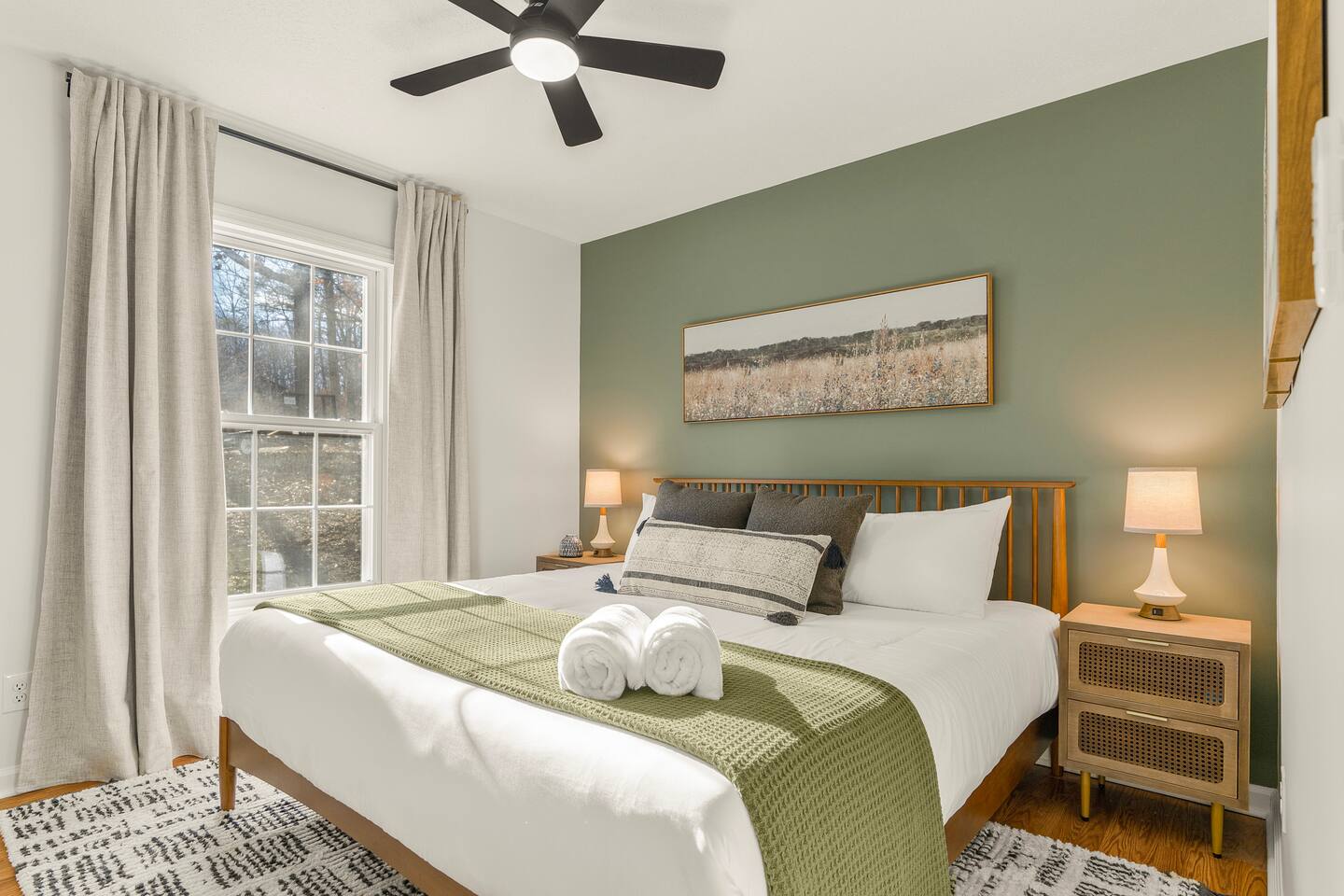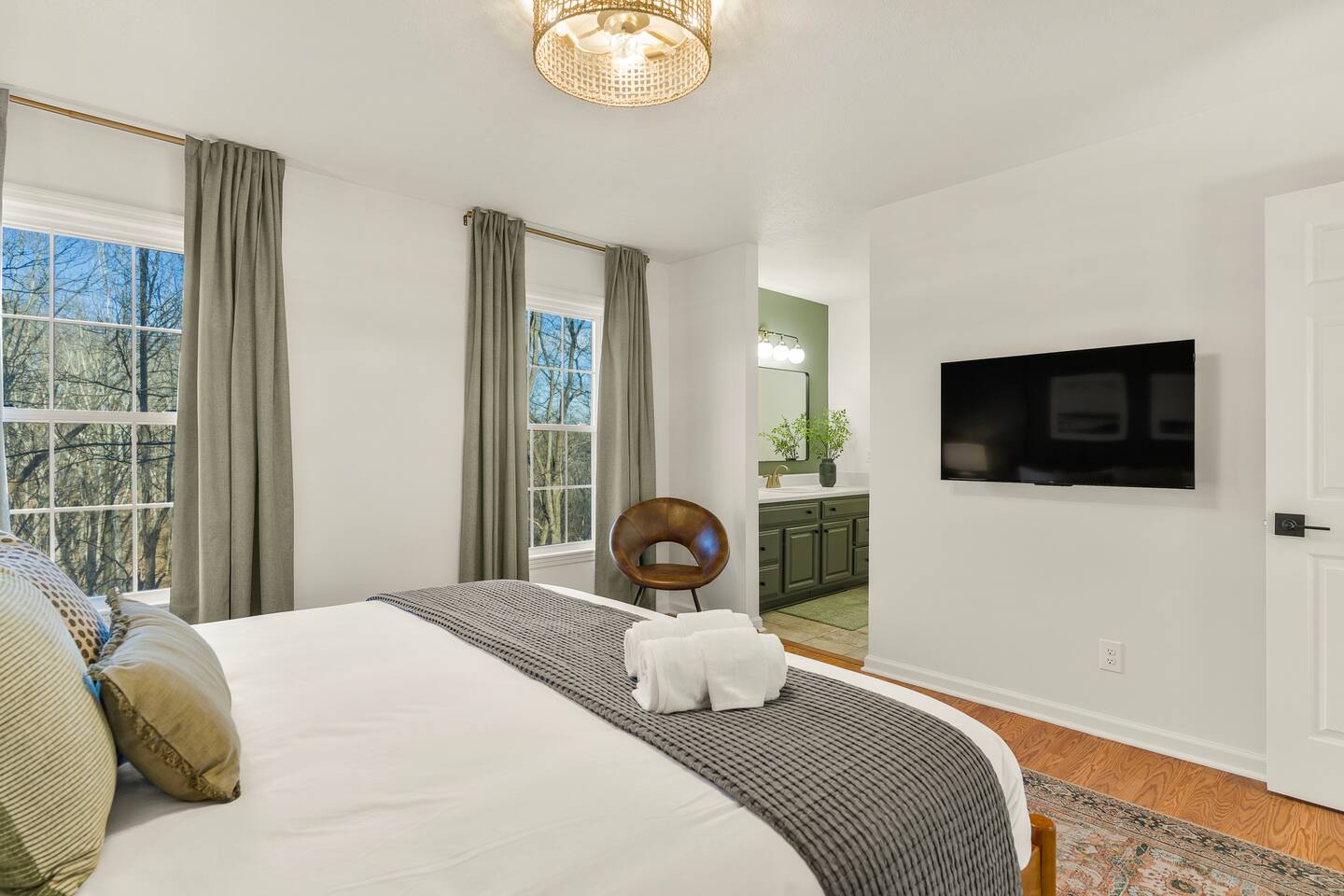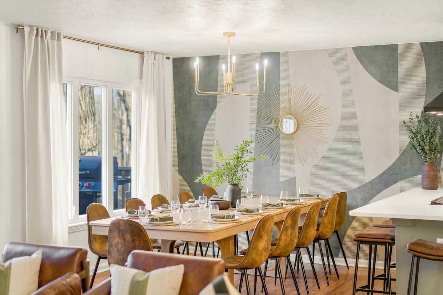 Welcome to Timber Ridge, a fully remodeled and designer-decorated home in Massanutten. With 6 bedrooms, the house sleeps 16 comfortably! Relax in the hot tub or sauna, then dine at the 16-person outdoor table or sip wine at the firepit. Inside you'll love the open floor plan and updated kitchen. Downstairs is a second living room/game room with foosball, karaoke, and arcade games. EV charger is in the driveway. Plus, pet friendly! Managed by New School Hosting- see my profile for more reviews.